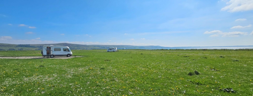 It’s £10 a night to stop overnight from 6pm to 9am, and free at other times. We’ve no idea if the other motorhomes will clear out at 6pm, or if they are here for the night (we couldn’t pay using the machine, so had to do it online instead), but I’m happy spending a few quid for another great view for the night.