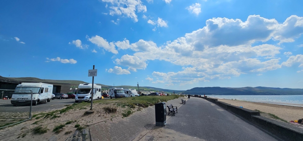 Our next stop was supposed to be a free beach side parking, but as we drove through the coastal town of Girvan, we spotted several motorhomes in a car park, so turned around and joined them.