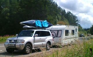 It was jnr#1s 16th birthday today. He had some friends over for a drink in the evening, and we set off on our long journey North just after mid night. We are really loaded up for this trip and the Shogun’s going to have to work for it’s living to haul 4 adult sized humans, 2 large dogs, a roof box, 2 man canoe, 2 mountain bikes and 1500kg of caravan all the way to The Scottish Highlands and back over the next 3 weeks.