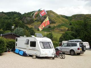 We arrive at our base for the next few days, Troutbeck Head CC Site, get booked in and start setting up on the pitch. Horror of horrors, we appear to have left behind the awning quick lock pads! Not good. I traipse off to reception and ask where the nearest accessory shop is. Turns out it’s 35 bloody miles away! With no choice, and knackered after the tow, we leave the boys and the dogs at the van and head off. 70 miles later we return with new quicklock pads, open up the awning bag and herself spots our old quicklock pads hiding themselves in plain view on top of the awning! Oh how we laughed about that!