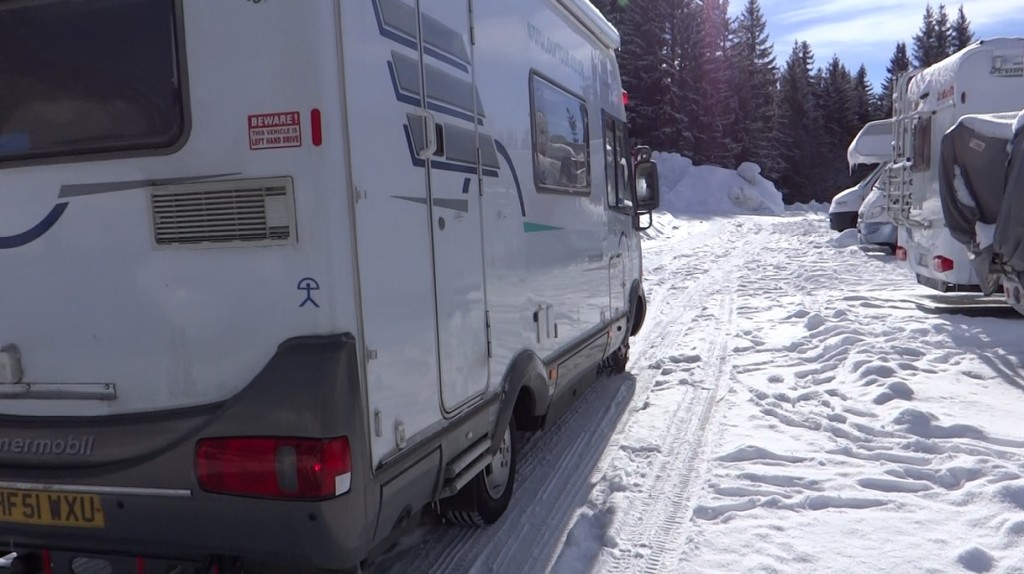 Anyway, 10:30am comes around. We’ve chipped off enough ice to enable us to move. The snow-chains are on and our French neighbour has nodded his approval I’ve done it right. The engine fired up first time, after the glow plugs spent an infinity warming up. This was it. The thing we’d (I’d) been nervous about for over 4 years: driving on snow, in front of seasoned locals. Off we went, Ju checking the chains had self-adjusted as I rolled along. The van just rolled along as though on black-top, up the slope to the barrier, Ju paid, and within a couple of hundred meters the road was gritted and off came the chains at the side of the road, taking care not to drive over the plastic bits as we took ’em off.